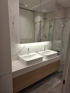 Ploca u kupatilu od belog kvarca sa laznom debljinom Novi projekat: Kvarcne ploče u kupatilu na Vračaru – besprekorna belina i vrhunska obrada Danas